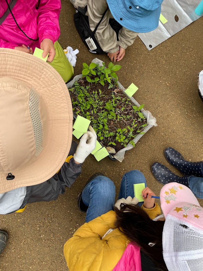 飯綱高原森の駅(Daiza houshi)OPENに先駆け、地域の生徒さんと一緒に里帰り植栽をしました。駐車場になってしまう一角の地被植物を工事が始まる前にトレーに取り置き保護し、新しく整備するところに戻すという取り組みです。もともとあったように自然な地被植物に覆われてほしいため、ノシバの間に植えて、そこから在来植生が広がっていくことを期待しました。子供たちは地元の小学生で、1年生から6年生の26名。話をよく聞き、観察もとても上手でした。植物をとりまく小さな世界に子供たちが触れるきっかけ作りとしての魅力と可能性を感じました。