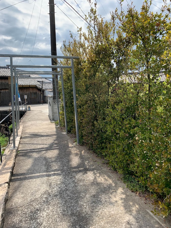 瀬戸内に浮かぶ緑の多い豊島にて。瀬戸内国際芸術祭2016にスプツニ子!のアート作品展示会場である古民家改修プロジェクト。我々は建築改修設計を担った建築設計事務所からの依頼を受け、庭の設計に入った。アート作品は映像と映像に登場する主人公のラボという構成で、「豊島八百万ラボ」では赤い糸を作り出す蚕を育てている設定。他には目もくれず、研究だけに没頭している女の子。であるとなると、庭では蚕のえさとなる小さな桑畑だけに気が行き届き、それ以外の場所については、以前の主が植えたであろう常緑の庭木が大きく育ち、生垣はぼさぼさ、実生の実のなる落葉樹などがひょろひょろと生える庭だろう、と想定した。